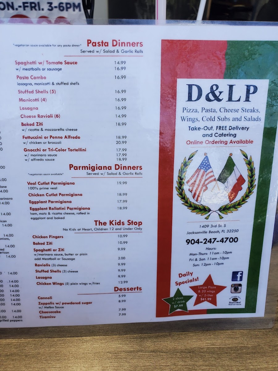 Welcome to D&LP Subs, a culinary gem nestled in Jacksonville Beach, FL. This inviting eatery is your go-to destination for mouthwatering subs, pizza, and more. Their menu boasts a delightful selection, including gourmet salads, calzones, and parmigiana dinners—perfect for any craving.